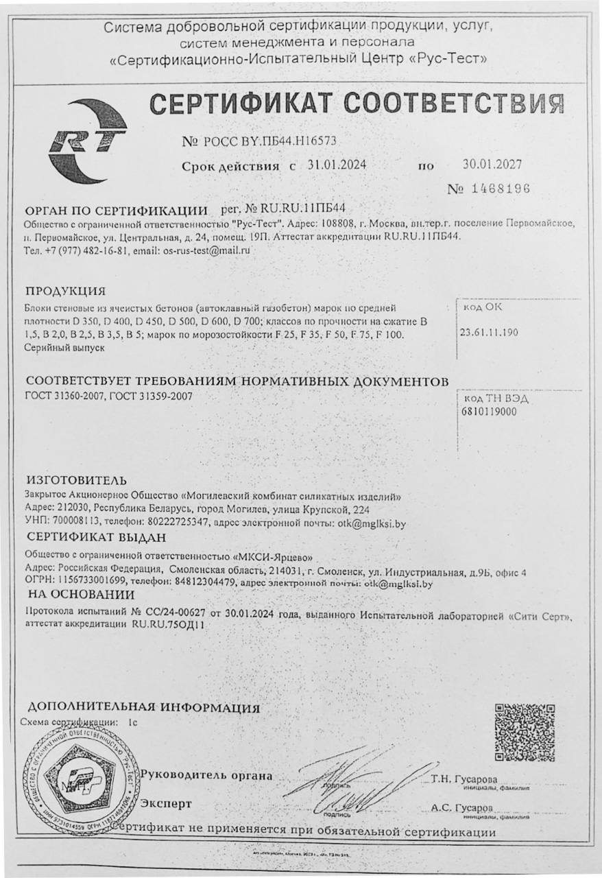 Марка прочности газобетона указывает на его способность выдерживать нагрузки. Чем выше марка, тем прочнее материал. Газобетон Могилевский КСИ D500 имеет достаточную прочность для большинства строительных задач.